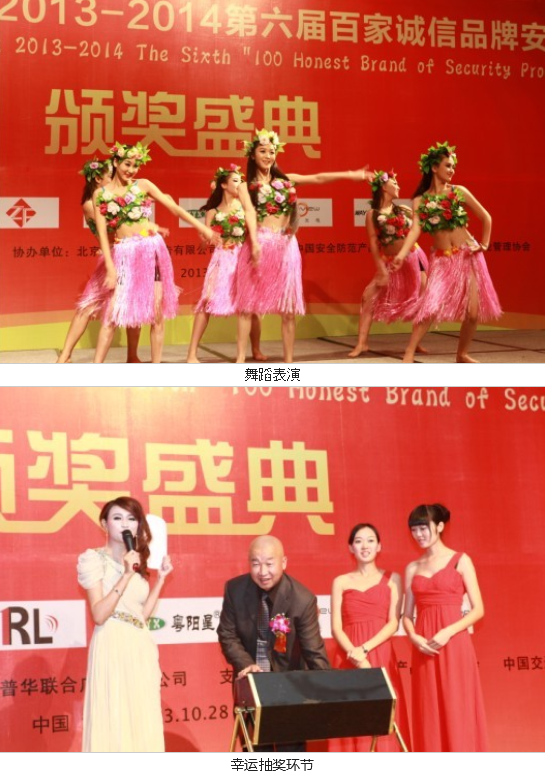 活動上,頒發(fā)的獎項有“2013-2014年度中國安防十大用戶滿意品牌”、“ 2013-2014年度中國安防十大核心技術(shù)品牌”、“ 2013-2014年度中國安防十大最具價值品牌”、“ 2013-2014年度中國安防十大誠信工程商”、“ 2013-2014年度中國安防誠信企業(yè)家”、“2013-2014年度中國安防行業(yè)誠信金樽獎”、“ 2013-2014年度30家金牌誠信安防供應(yīng)商”、“ 2013-2014年度百家誠信品牌安防供應(yīng)商”。