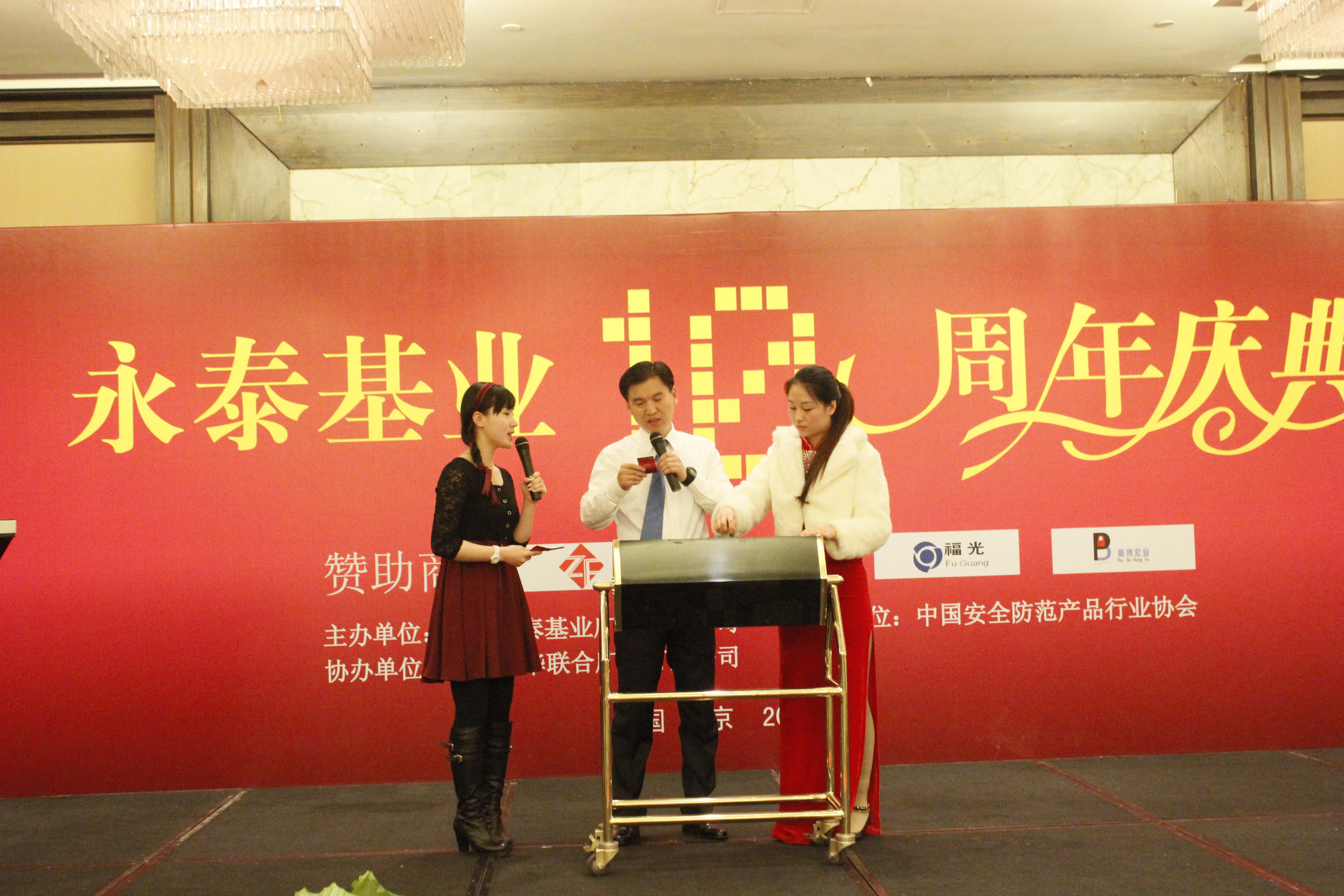 永泰基業(yè)于2013年4月2日(星期二)下午3點在北京中關(guān)村皇冠假日酒店(五星級)三樓皇冠宴會廳舉辦了永泰基業(yè)十周年慶典及答謝晚宴!中國安防協(xié)會副理事長 李華蓉先生為 此次會議致辭,原公安部科技局局長、中國安防協(xié)會副理事長、教授、司同軍先生,北京安全防范行業(yè)協(xié)會 副秘書長韓錦坤先生,北京市安全防范技術(shù)學會秘書長、原北京市公安局內(nèi)保局副局長、楊英女士,全國安防標準化技術(shù)委員會原秘書長、研究員、資深安防專家、劉希清先生,公安部安全與警用電子產(chǎn)品質(zhì)量檢測中心原主任、資深安防專家、李仲男先生,原公安部科技信息所情報室主任、北京安防協(xié)會顧問、高級工程師、董克賢女士到會祝賀。同時行業(yè)專家、安防廠商、經(jīng)銷商、工程商、系統(tǒng)集成商、安防行業(yè)相關(guān)人士等悉數(shù)參加。