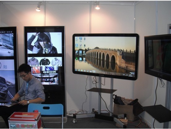 在此次展會中,德凱環(huán)球以“引領(lǐng)商用視屏——創(chuàng)造時尚與價值”為企業(yè)目標(biāo),以“時尚、 科技、 簡約”的產(chǎn)品設(shè)計理念,帶來的多款新品吸引了眾多參展人員的關(guān)注。德凱環(huán)球商用視屏共分五大系列:數(shù)字標(biāo)牌/廣告機(jī)、超高亮高清商用電視、多功能移動商用屏、觸摸一體機(jī)、WHDI互動商用大屏。這次展會中展示的40寸/46寸/55寸多功能移動商用屏和高清高亮70寸數(shù)字標(biāo)牌兩款新品,可謂是賺盡了大家的眼球。