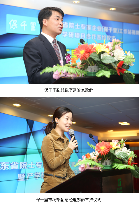 儀式由保千里市場部副總經(jīng)理黎麗主持。在主持人介紹完眾位參會嘉賓后,保千里副總裁李翊作開幕致辭。李總對各位領(lǐng)導(dǎo)及嘉賓的出席表示歡迎和感謝,感謝各位領(lǐng)導(dǎo)、專家為保千里搭建“院士工作站”產(chǎn)學(xué)研合作平臺,他表示,保千里與深圳大學(xué)ATR國防科技重點實驗室進行戰(zhàn)略合作,同時簽約深圳公安局刑偵局產(chǎn)學(xué)研項目聯(lián)合攻關(guān),旨在強強聯(lián)合、優(yōu)勢互補,將院士團隊的優(yōu)質(zhì)人才、技術(shù)資源和企業(yè)資金、市場需求緊密結(jié)合,推動高端視像技術(shù)在平安城市、智能交通與工業(yè)自動化上應(yīng)用推廣。李總衷心地希望各位領(lǐng)導(dǎo)、專家對保千里發(fā)展多提寶貴意見,進一步提升企業(yè)服務(wù)社會的整體能力和綜合水平。