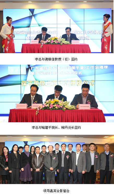在領(lǐng)導(dǎo)嘉賓合影留念的歡樂氛圍中,廣東省院士專家企業(yè)(保千里)工作站揭牌暨產(chǎn)學(xué)研項目合作簽約儀式圓滿落下帷幕。