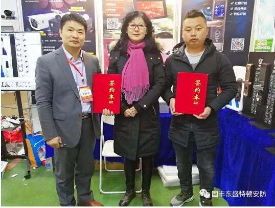 本屆展會(huì)上,國(guó)豐東盛智能視頻監(jiān)控、智能家居、無(wú)線(xiàn)套裝、4G太陽(yáng)能、VR搖頭機(jī)、汽車(chē)后裝六大產(chǎn)品板塊及嘿唄虹膜智能鎖、特頓人臉識(shí)別攝像機(jī)守護(hù)者X系列、VR搖頭機(jī)、互聯(lián)網(wǎng)云存儲(chǔ)攝像機(jī)小管家等爆款級(jí)創(chuàng)新前沿新品在展會(huì)上大放異彩,吸引了眾多參觀者前來(lái)體驗(yàn),眾多工程商、集成商對(duì)國(guó)豐東盛智慧安防工廠(chǎng)店模式興趣甚濃,并達(dá)成加盟意向。遼寧錦州李總、吉林長(zhǎng)春任總等加盟伙伴進(jìn)行了現(xiàn)場(chǎng)火熱簽約,正式加入國(guó)豐東盛大家庭!