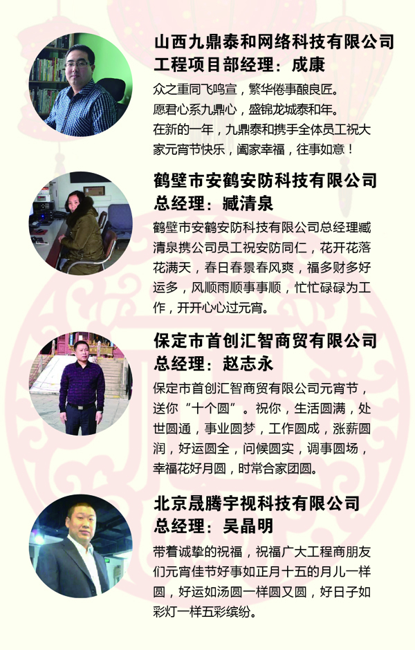 摘要:值此元宵佳節(jié)來臨之際,永泰傳媒攜手部分安防企業(yè)及工程商朋友祝大家元宵節(jié)快樂!