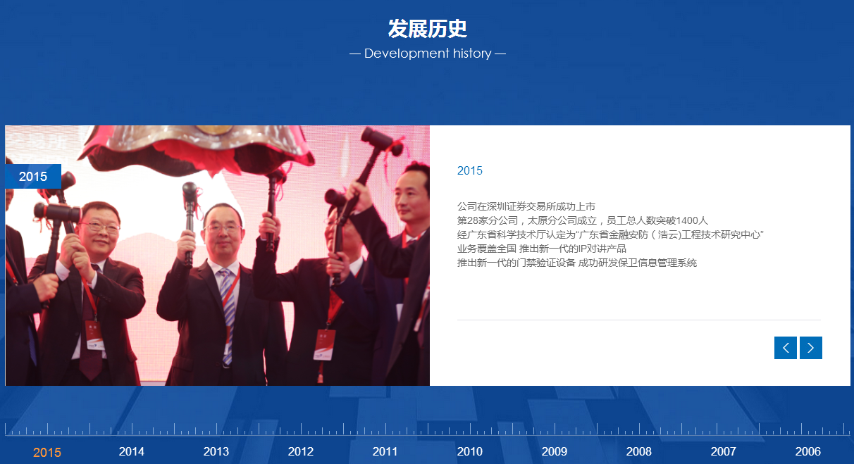 廣州市浩云安防科技股份有限公司,是一家專業(yè)從事金融安防產(chǎn)品研發(fā)、生產(chǎn)、銷售的高新技術(shù)企業(yè)。公司成立于2001年3月8日,現(xiàn)注冊資本為8000多萬元,于2015年成功上市,證券簡稱為“浩云科技”,證券代碼為“300448”,是國家高新技術(shù)企業(yè),擁有安防企業(yè)技防壹級(jí)資質(zhì),建筑智能化工程設(shè)計(jì)與施工貳級(jí)資質(zhì),計(jì)算機(jī)信息系統(tǒng)集成資質(zhì),是中國安全防范產(chǎn)品行業(yè)協(xié)會(huì)副理事長單位,全國安全防范報(bào)警系統(tǒng)標(biāo)準(zhǔn)化技術(shù)委員會(huì)委員單位,中國通信工業(yè)協(xié)會(huì)物聯(lián)網(wǎng)應(yīng)用分會(huì)副理事長單位,參與制定了公共安全方面的多項(xiàng)國家及行業(yè)標(biāo)準(zhǔn)。